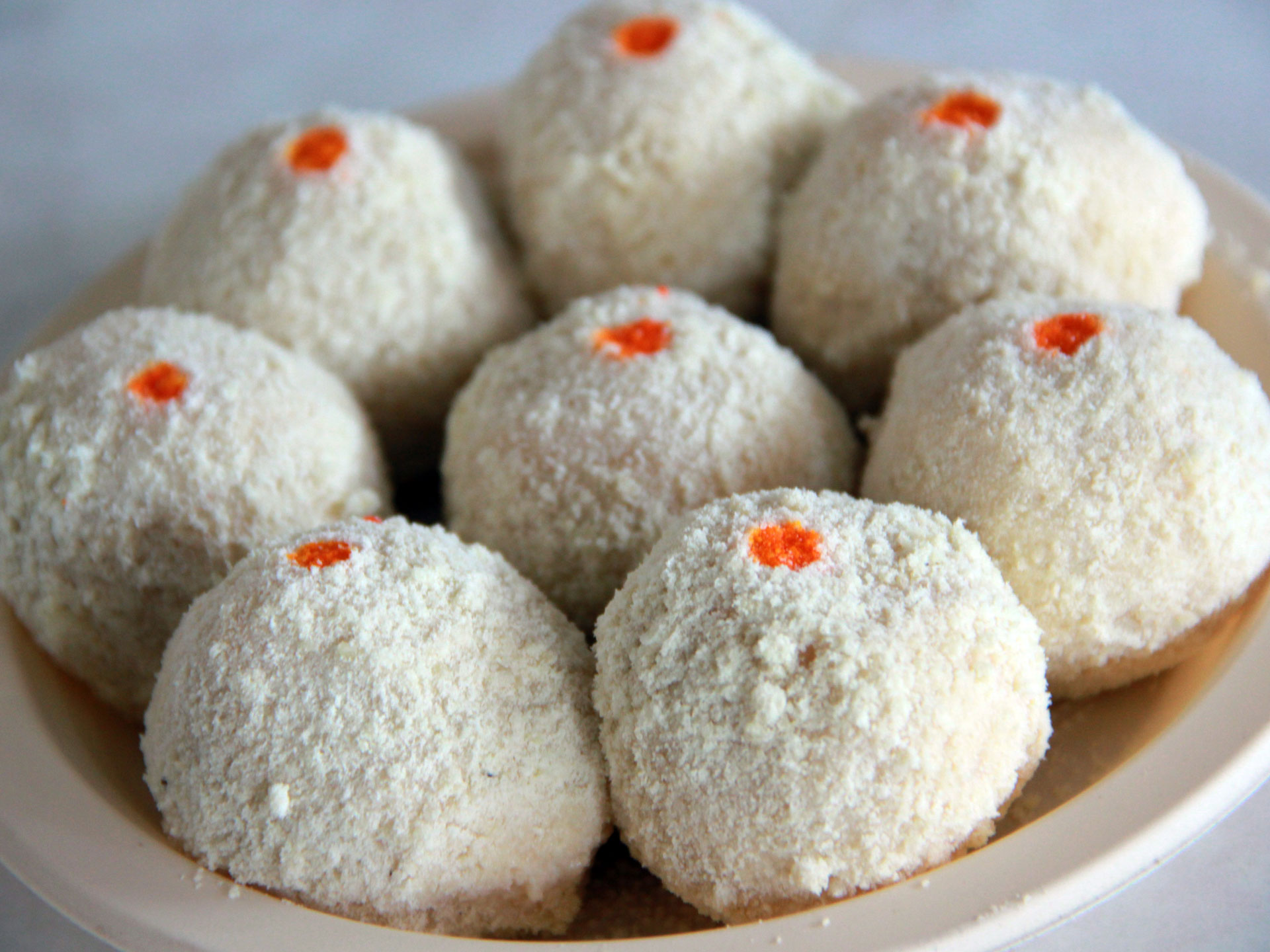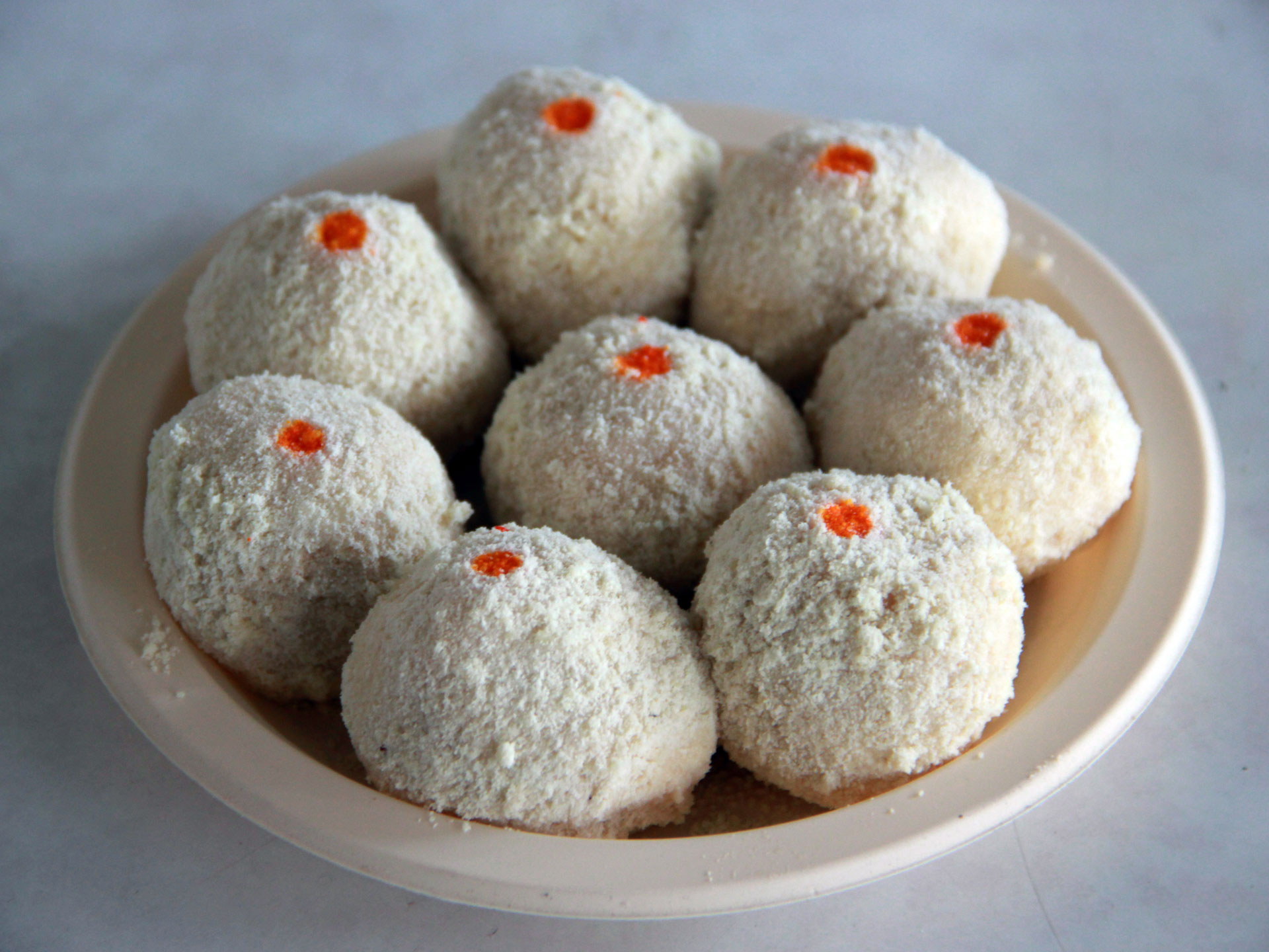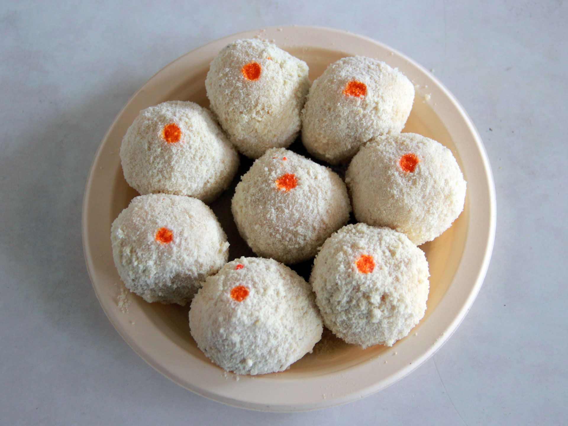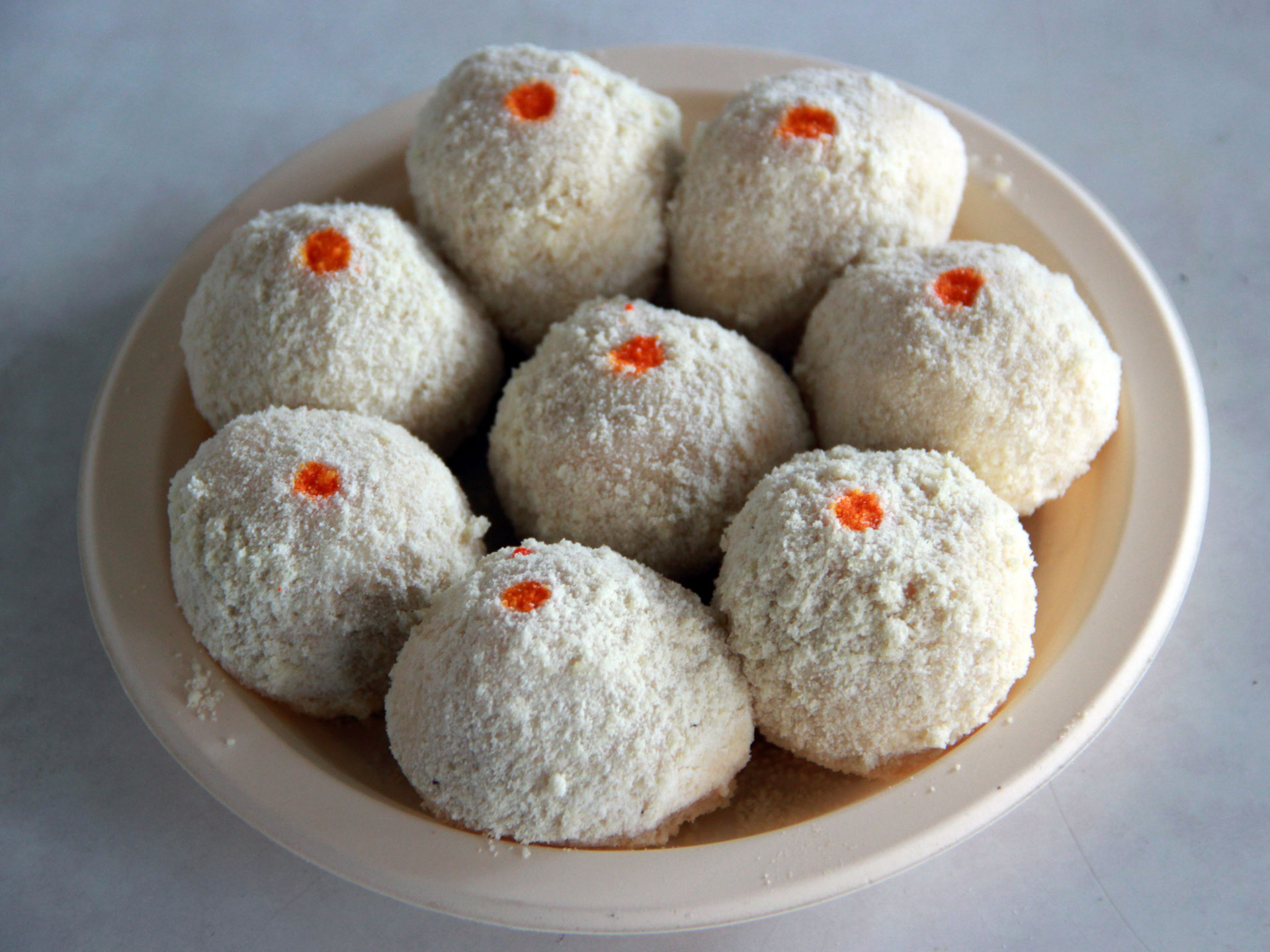 Melt in mouth like butter, Makhan Bade prepared from the round shaped balls of Chhena (cottage cheese), soaked with light sugar syrup and garnished with cardamom powder, saffron, coconut dry powder and orange food color is a soft sweet dish.What is Makkhan Bada