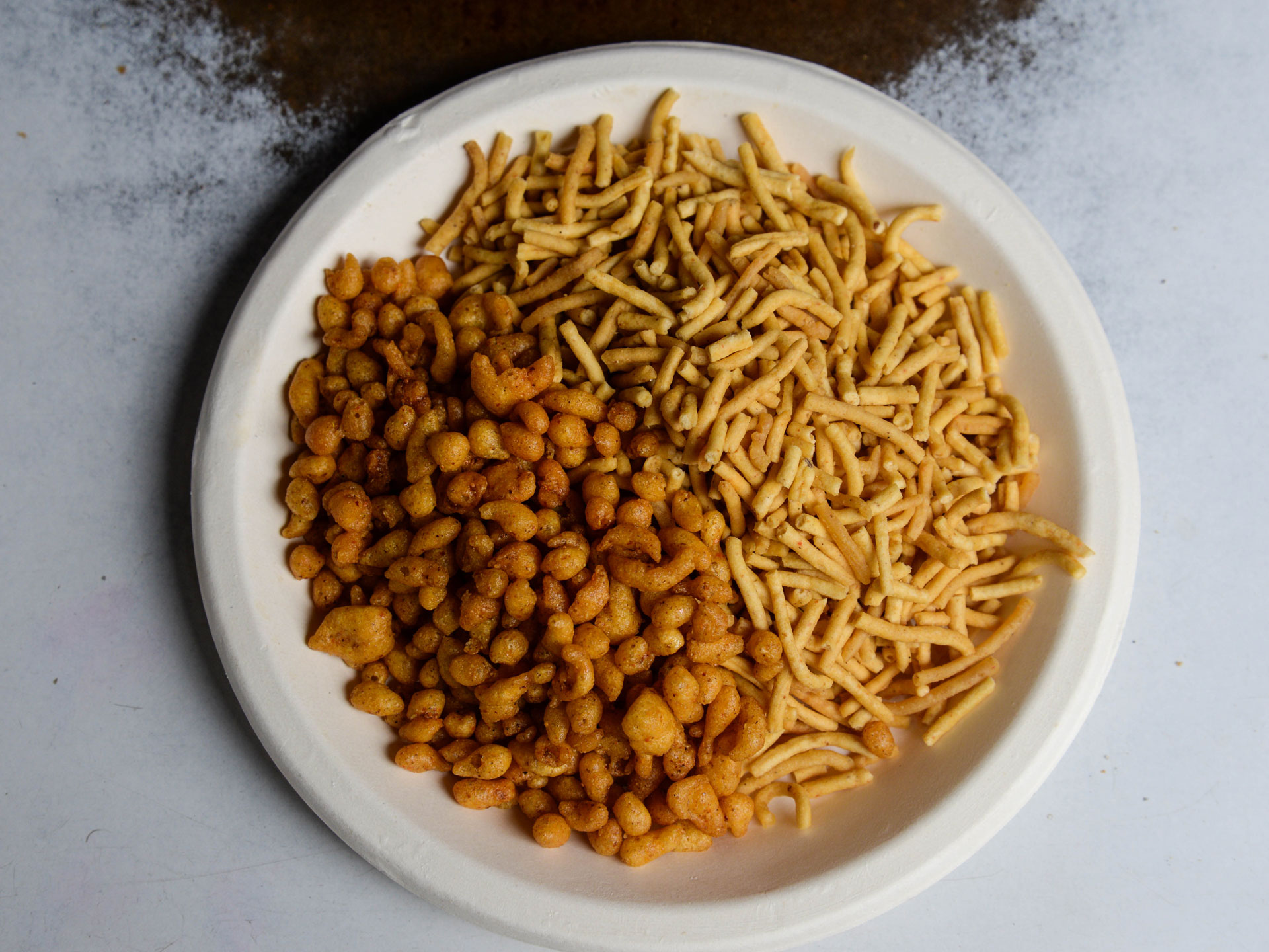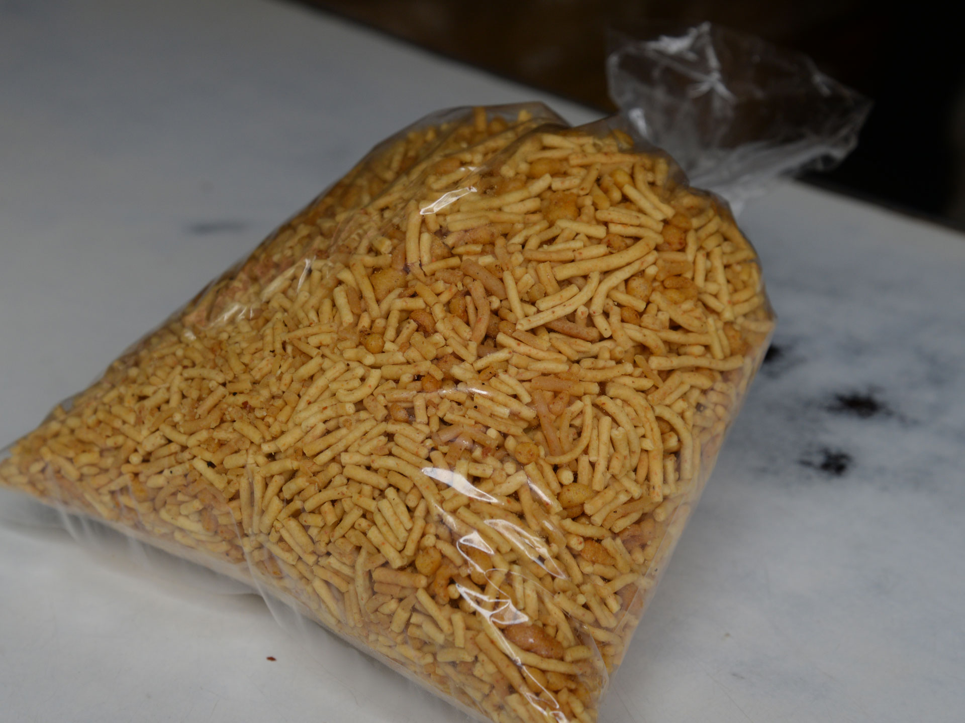 At first glance, it looks like regular Sev, but the taste here is evidently different. Crunchy noogre (fried tiny hollow balls) add a typical sourly-salty flavor (originating from black salt) to the soft spicy sev, mixed together it makes the most sought-after combo, at this eatery.The Taste