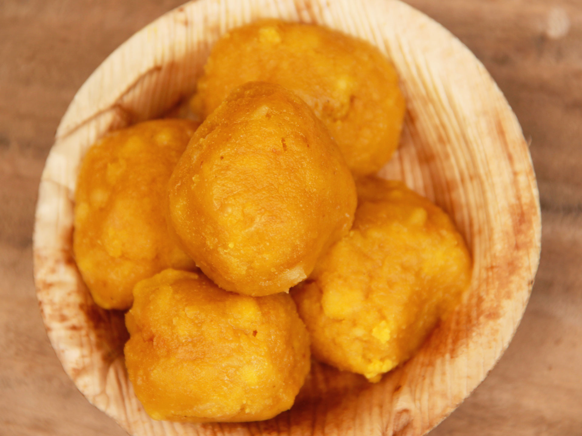 Seasoning with cardamom powder and saffron lend a distinct taste to the luscious Panchdhari Laddoo served at Dhanraj Ranmal Bhatia.The Taste