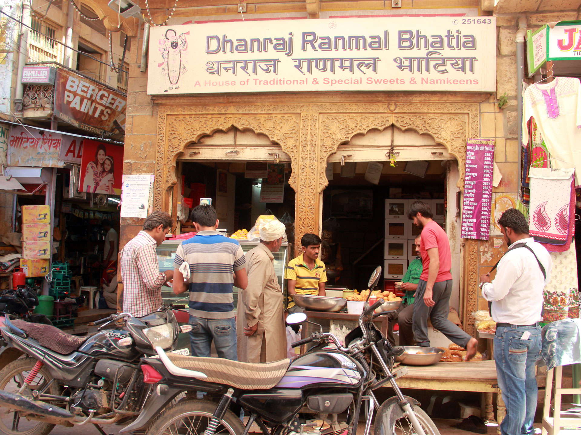 Found at Bhatia Market, near Jaisalmer Fort, the decades old Dhanraj Ranmal Bhatia is a famous sweet shop and has experience of ten generations to serve a variety of delectable sweet delicacies, Namkeens and snacks to its customers at affordable prices. The shop has the distinction of being the pioneer to introduce the delicacy- Panchdari Ladoo in the town. It finds the place in the coveted website- Lonely Planet. It attracts many people at festive times and has a neat orderly ambiance.