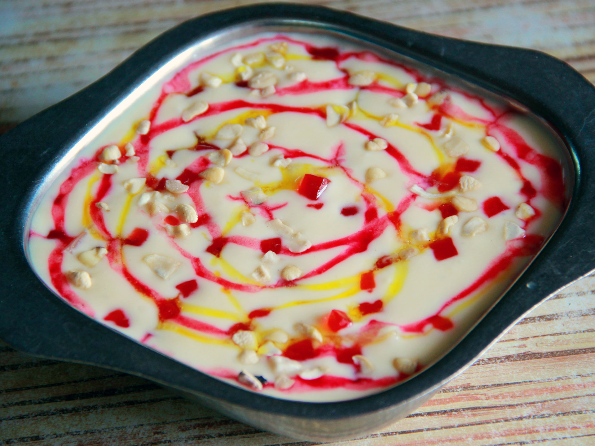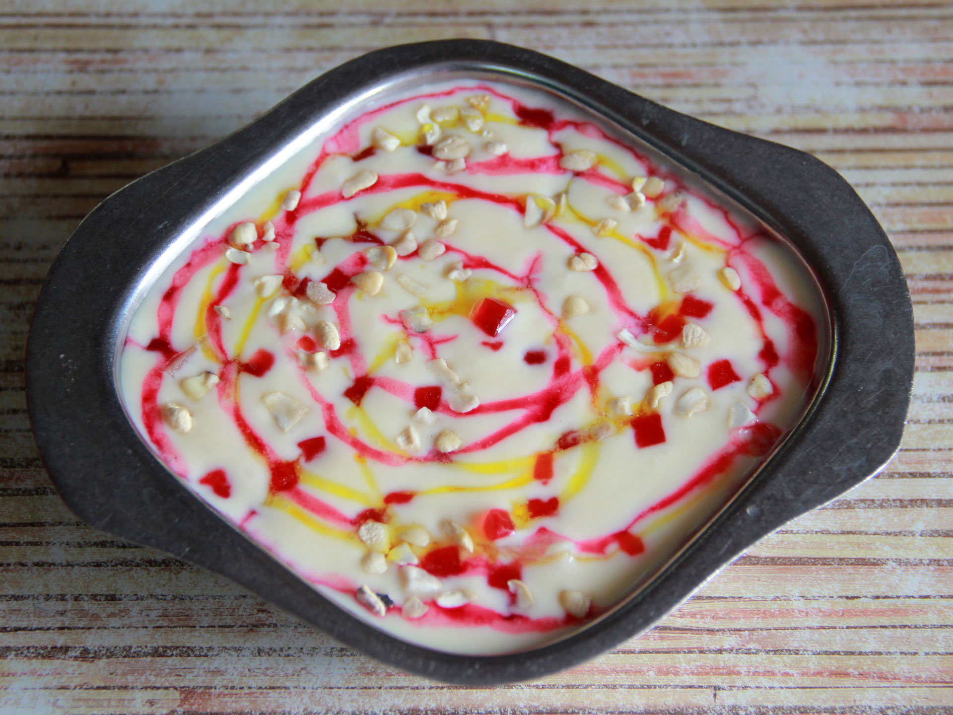 The sweet and sour Fruit Raita prepared from curd, milk cream and branded Cut Fruits- comprised of pineapple, papaya, pomegranate etc, seasoned with ground black pepper, pinch of salt and Chaat Masala is a very delectable delicacy. The taste is available from 11:00 a.m. to 11:00 p.m.What is Fruit Raita