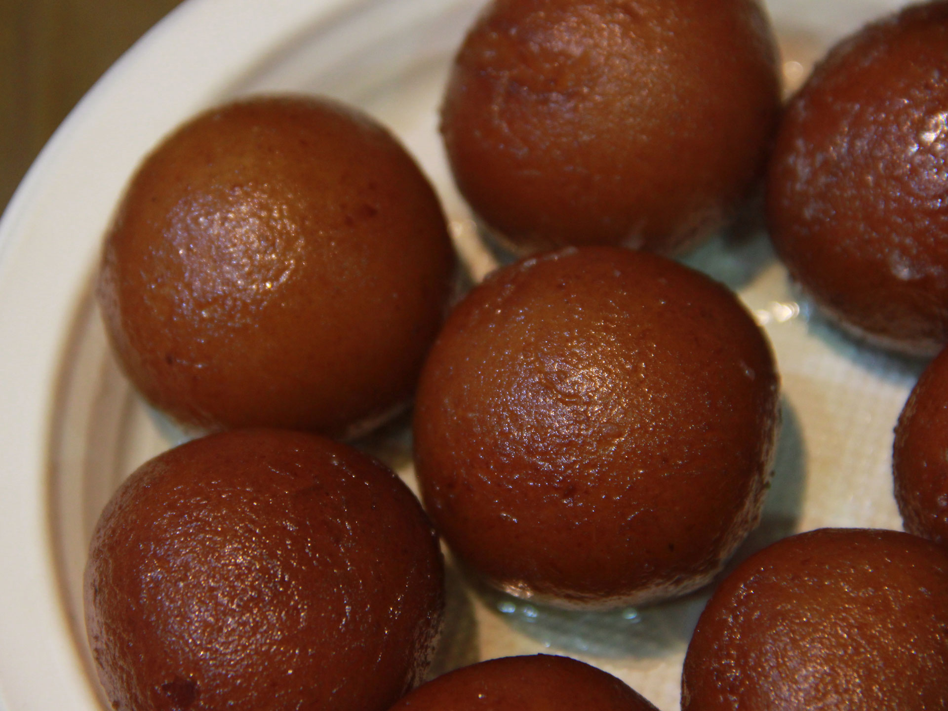 The sweet delicacy Gulab Jamuns are small balls made from the dough of Khoya (dried whole milk) and pinch of flour deep-fried in the pure desi ghee (clarified butter) and garnished with pistachio are full of sugary syrup and highly delectable.What is Gulab Jamun