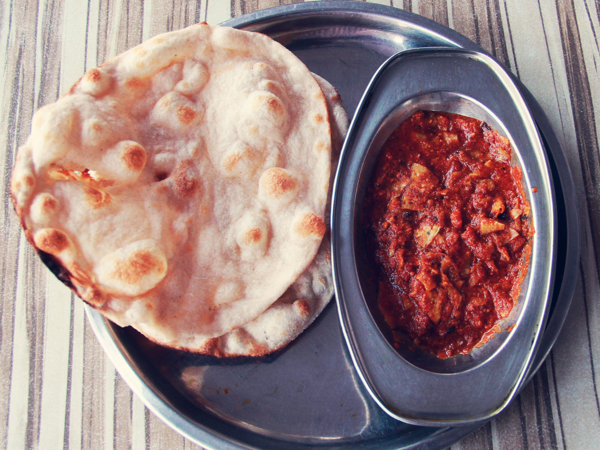 The smoky flavor of roasted Papad- a crisp, thin round shaped delicacy prepared by a spiced dough normally made from washed black gram-flour (urad flour), fried or cooked on dry heat is prepared with the sliced onion, garlic and usual spices. Papad Pyaaz ki Sabji can be prepared instantly within no time and is relished with hot Chapatis (Indian bread) applied with Desi Ghee (clarified butter).What is Sabzee / Sabzi /Bhaajee