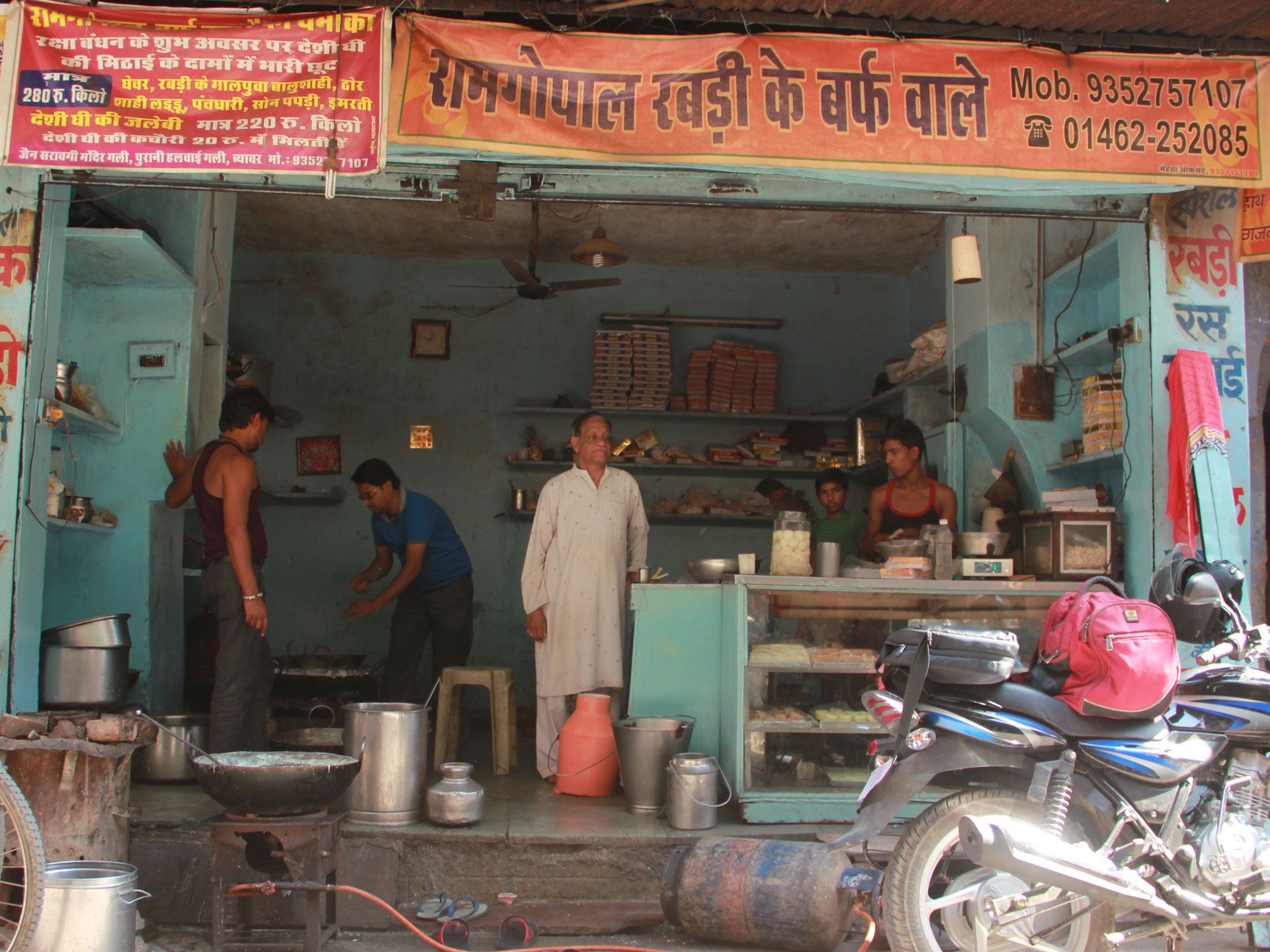 Nearly five decades old Ram Gopal Agrawal ki Rabri takes pride in its long service of preparing a variety of sweets made in pure Desi Ghee (clarified butter) serving the same at reasonable price. The shop bears a very traditional look and all original methods of preparing the sweets (preparing on Bhati) are still followed till today.