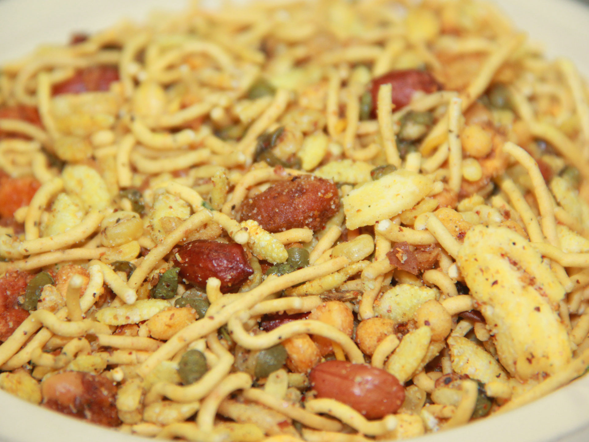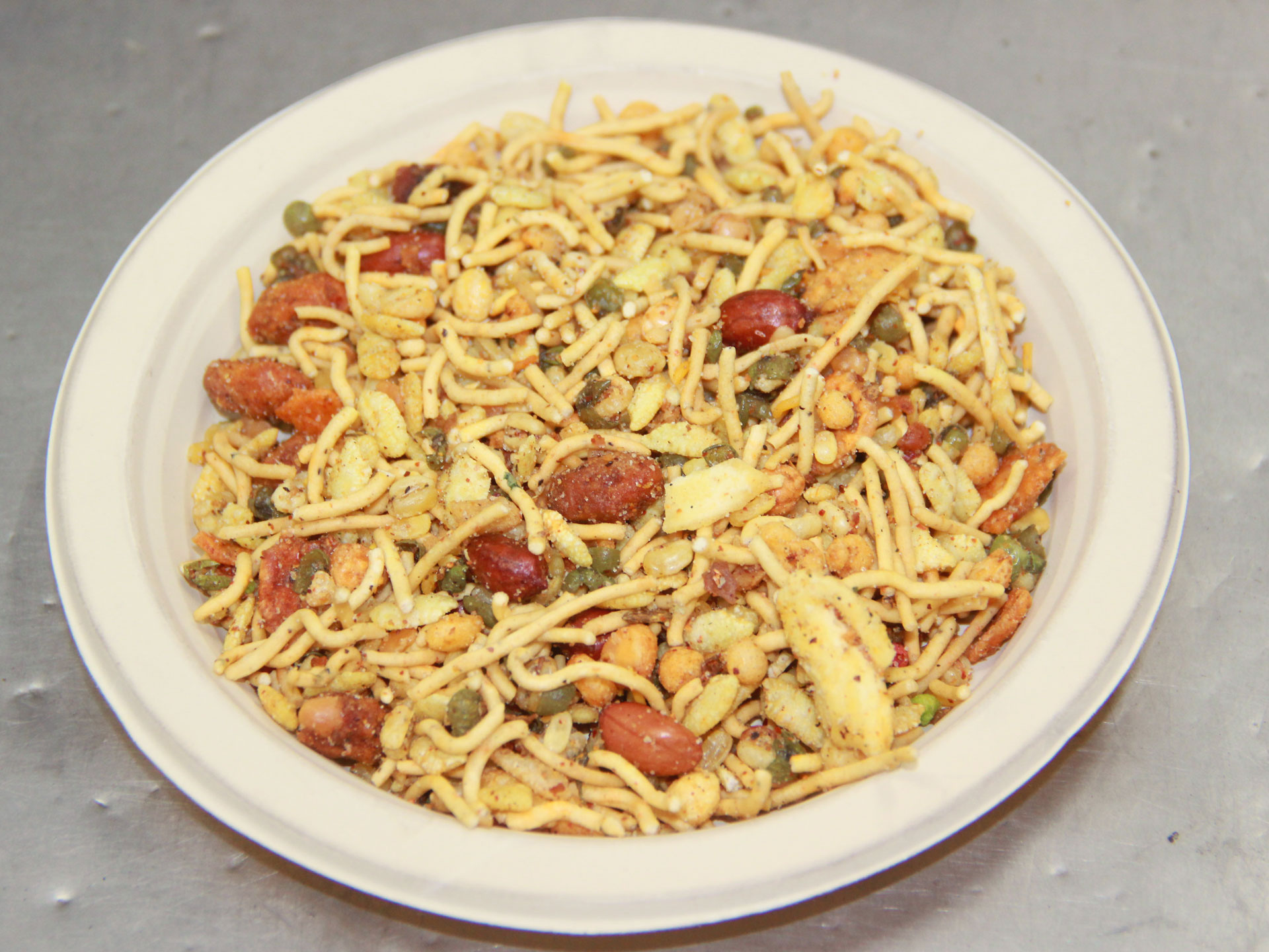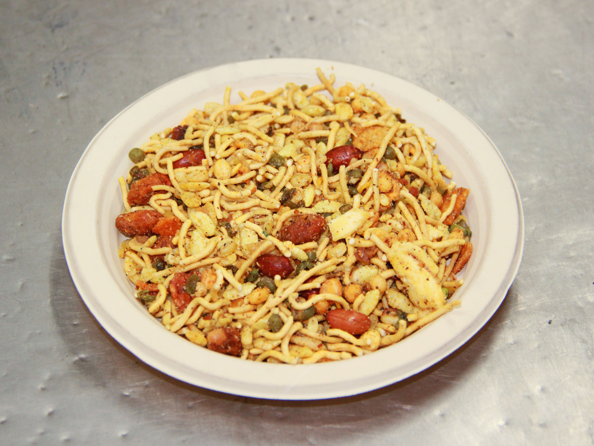 The savory Mixture Namkeen prepared by mixing some thirty five variety of Namkeens and flavors, like- peanuts, fried Moong ki Daal ,Chane ki Daal , Namkeen with clove (Laung), Namkeen Sev , spicy Chana Jor (flattened chickpeas), thick-sized Namkeen Sev, Ratlami Sev, minr (Pudina) flavored Sev, Bhujiya, garlic flavored Namkeen, Bhav Nagari Sev, Mathari (salty deep-fried refined flour biscuit), Namkeen Kachori,etc. is a crisp and crunchy snack. The taste is available from 08:00 a.m. to 10:00 p.m.What is Namkeen/Sev
