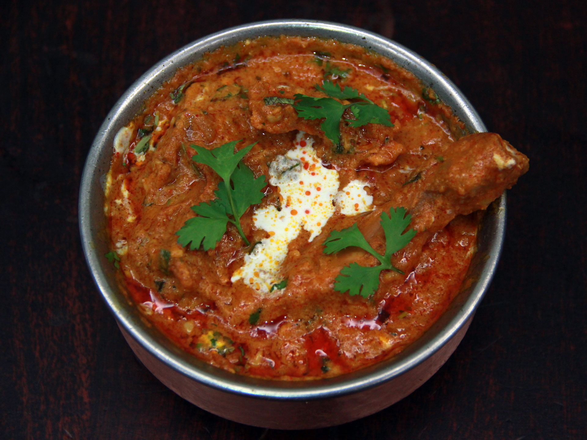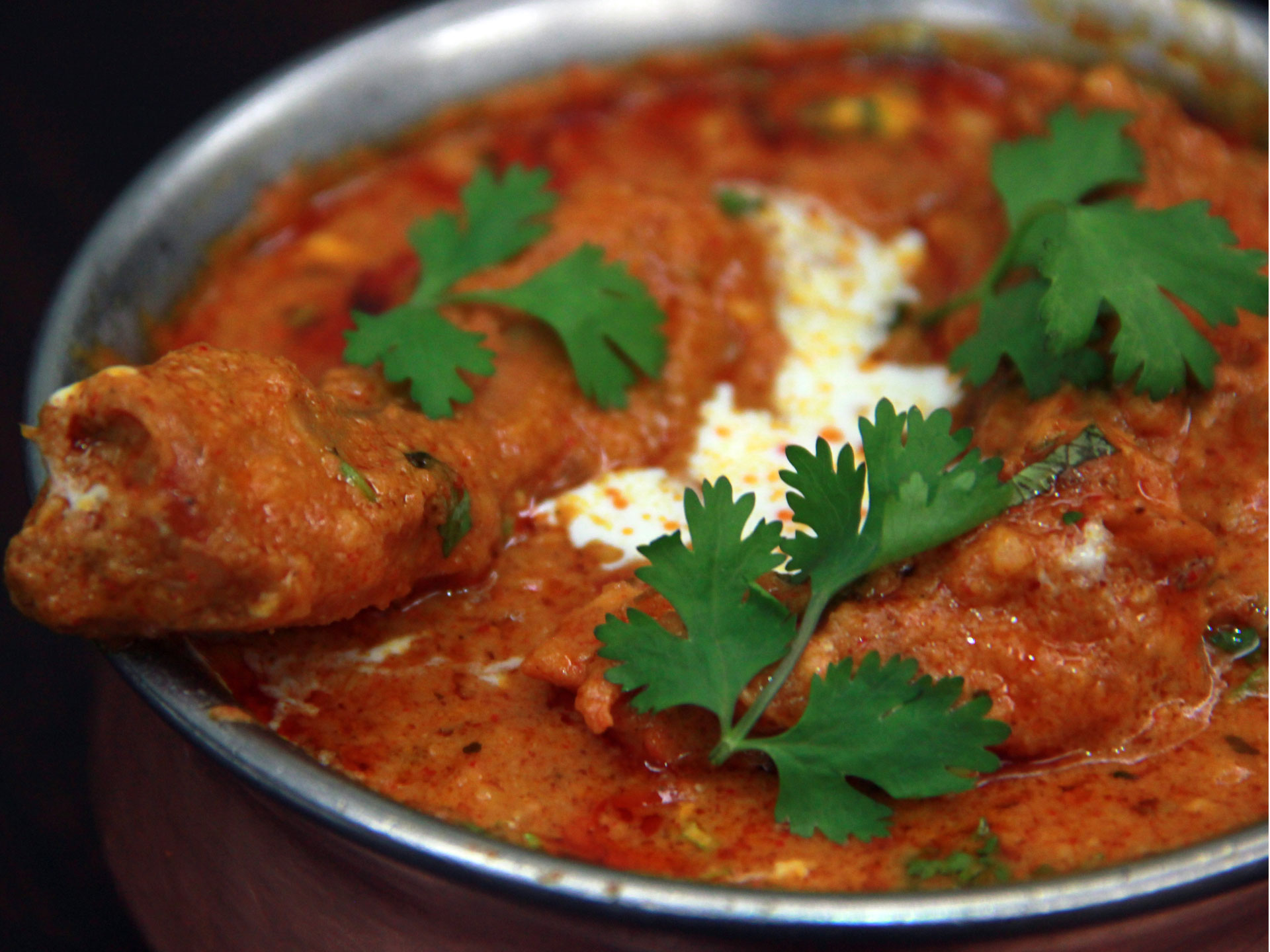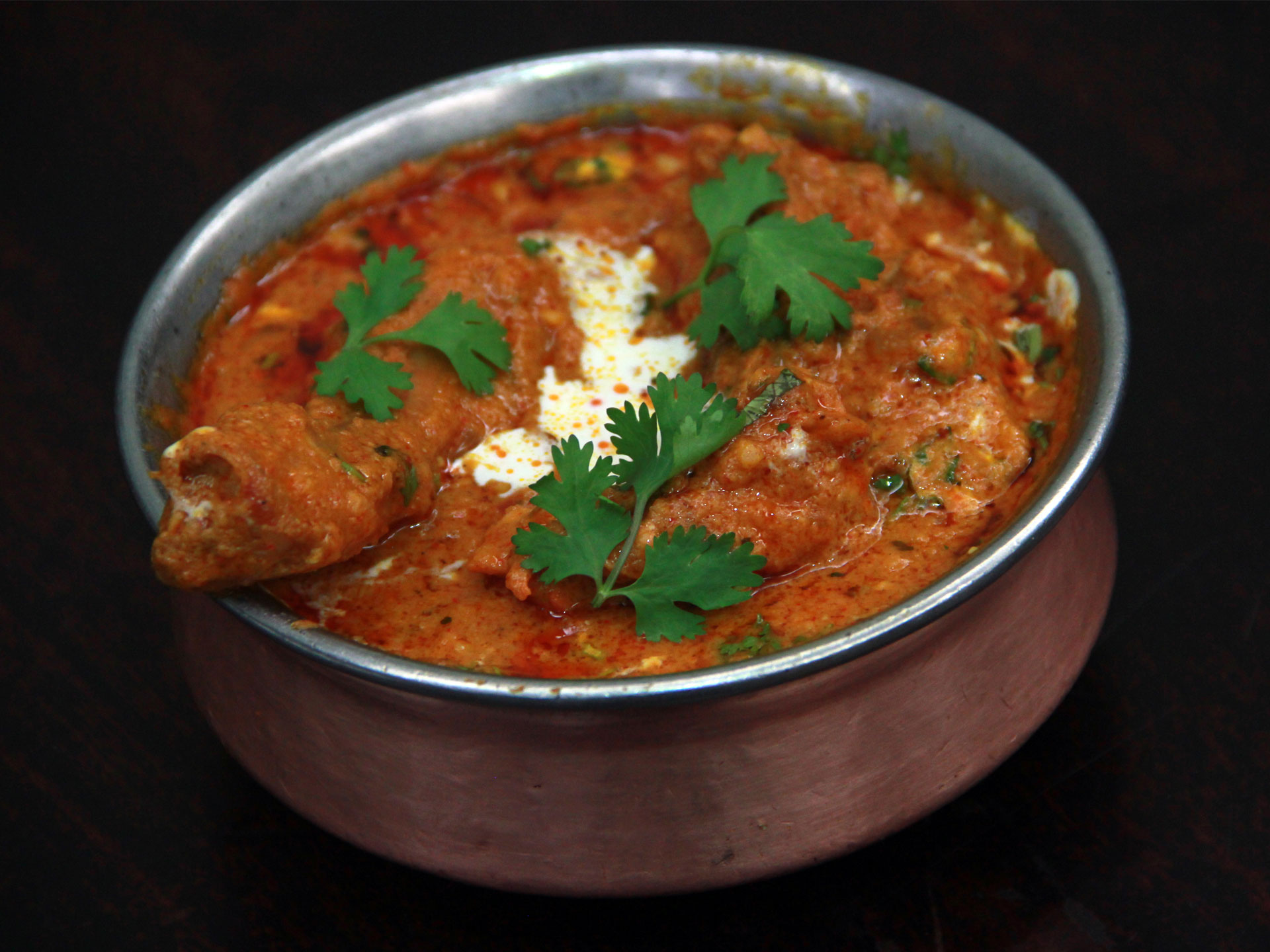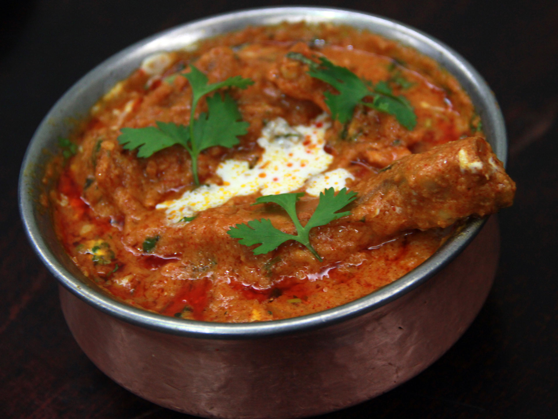 This Butter Chicken prepared from the tender pieces of chicken marinated for long hours, roasted and cooked in thick tomato and creamy gravy of normal spices, onions, garlic and Garam Masala (mixture of several hot spices) is a delectable spicy, sweet and sour chicken cuisine. Garnished with coriander leaves and, it is relished with Rotis and Naan.What is Butter Chicken