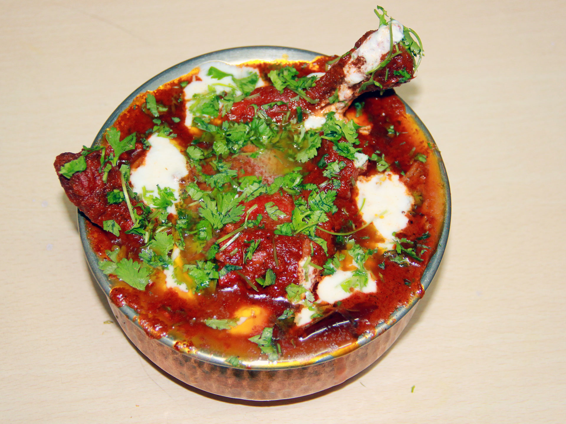 This Butter Chicken prepared by marinating tender chicken pieces in curd, red chili powder, turmeric, ajinomoto , lemon, etc for a few hours, roasted in Tandoor and cooked in a thick spicy gravy made from garlic, ginger, tomato, cream, butter, cashew nut paste, water melon seeds (Tarbooj ke Beej), coconut powder etc seasoned with normal spices, like- salt, ground red chili, coriander, turmeric, Garam Masala (mixture of several hot spices), Chicken Masala etc. is a delectable spicy poultry delicacy. Served by garnishing it with butter, cream and coriander leaves, it is relished with all types of Indian breads.What is Butter Chicken